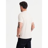 Ombre Men's t-shirt with button neckline and suede trim - white cijene