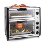 Prostrana pećnica s dvije odvojene komore za pečenje, kapaciteta 42 l. Rotirajući ražanj za ravnomjerno pečeno pile, pečenja i drugih jela. Pošiljka sadrži i površinu za roštilj na gornjoj strani uređaja, rešetke i limove. Uređaj AllYouCanEat tvrtke oneConcept je izuzetna dvostruka pećnica s mnogim mogućnostima korištenja. Zahvaljujući dvoma samostalnim pećnicama, moguće je pripremiti dva menija. Pečeno pile, zapečeno povrće, pečeni krumpir. Sa uređajem AllYouCanEat moguće je slobodno kombinirati. Osim rešetki i limova u pošiljku je uključen i rotirajući ražanj, koji omogućuje pripremu piletine ili pečenja. Na vrhu dvostruke pećnice je još jedno iznenađenje: poseban nastavak čini, od uređaja AllYouCanEat, roštilj. Obe pećnice su opremljene timerom i ladicom za mrvice. Temperatura donjeg dijela može biti regulirana termostatom. Bilo da pri svakodnevnom korištenju u sjenici u vrtu ili na zabavi sa kulinarskim zahtjevima: Uređaj AllYouCanEat tvrtke one Concept će svugdje napraviti dobar dojam.