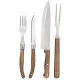 Poklon set pribora za jelo Orion oduševit će svakog ljubitelja roštilja. Set uključuje noževe za odreske, vilice i pribor za posluživanje, a sve to nadopunjeno daskom za rezanje od akacijevog drva. Set uključuje 6 vilica duljine 22 cm, 6 noževa za odreske duljine 23 cm, veliki nož (32,5 cm), vilicu (33 cm) i dasku za rezanje dimenzija 37 x 23 x 1,5 cm.