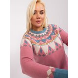 Dirty pink women's plus size sweater with patterns.Product code: PMSWPM837.31XDominant pattern: geometricStyle: Casualoccasion: everyday, for the city, for a walkThe model is wearing size L/XL. Model's measurements: height 172 cm, bust 103 cm, waist 73 cm, hips 103 cm.Dimensions of the sweater in size L/XL measured flat: armpit width 60 cm, sleeve length 64 cm, total length 65 cm.