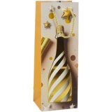 GIFT BAG FOR A BOTTLE WITH A CHAMPAGNE MOTIFAn elegant and effective gift bag for a bottle is a great way to uniquely pack alcohol or other alcohol for any occasion. The bag stands out with its modern and party design, presenting champagne bottles surrounded by colorful confetti, stars and shiny decorations. It is an ideal choice for birthdays, New Year's Eve, weddings, anniversaries or other celebrations, where celebration and celebration are at the forefront!The bag is made of durable decorative cardboard, which guarantees solidity and durability, even when carrying heavier bottles. The braided handle in gold color adds elegance and ensures comfortable carrying. The champagne motif and decorations in the form of shiny accents make the bag look very effective and attract attention.With dimensions of 35 x 12 x 9 cm, the bag is perfect for a standard bottle of wine, champagne or other alcohol. It is a great way to emphasize the uniqueness of the moment and add shine to any celebration.SPECIFICATION:Type: Bottle gift bagTheme: Champagne bottles, confetti, starsColors: Pink, beige, gold, blueBag dimensions: 35 x 12 x 9 cmMaterial: Durable decorative cardboardHandles: Braided in goldPurpose: For wine, champagne, spirits, occasional bottlesStyle: Party, elegantSET CONTENTS:1 bottle gift bag