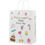 Papirnata vrećica dimenzija 20 cm x 15 cm savršena je kao ambalaža za male poklone. Ukrašen šarenim grafikama. Ima natpis "Sretan svaki dan" što ga čini idealnim za razne prigode rođendane, zabave ili susrete s dragim osobama.20 cm x 15 cm