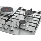 U potrazi ste za kombiniranom pločom za kuhanje koja će zadovoljiti sve vaše kuharske potrebe? Upoznajte našu kombiniranu ploču za kuhanje koja nudi nevjerojatnu površinu za kuhanje povećanu za čak 20% i veću udaljenost između plamenika idealno rješenje za sve veličine tava i lonaca. Elegantan i ravan dizajn osigurava lako klizanje posuda bez ometanja, uz savršenu stabilnost koja će vašim kuharskim avanturama dati novu razinu sigurnosti. A s jednoručnim paljenjem plamenika, upravljanje pločom za kuhanje nikada nije bilo jednostavnije. Pritisnite gumb i okrećite jednom rukom do željene razine dok vam druga ruka ostaje slobodna brzo, jednostavno i učinkovito. Naše emajlirane nosive rešetke izvedbe pružaju izdržljivost i lako održavanje, a zone za kuhanje s različitim snagama i funkcijama omogućuju vam da odaberete točno ono što vam treba. Od malog plamenika na lijevoj prednjoj strani s snagom od 1050 W do brzogrijuće ploče promjera 145 mm na lijevoj stražnjoj strani s snagom od 1500 W, pa sve do velikog plamenika na desnoj stražnjoj strani s snagom od 3000 W ova plinska ploča za kuhanje savršena je za sve vaše kuharske potrebe. A kada je riječ o izgledu, naša ploča za kuhanje dolazi u različitim dimenzijama, bojama i materijalima, uključujući ploče od nehrđajućeg čelika, metala i kaljenog stakla. A s poboljšanim materijalima koji su otporniji na ogrebotine, ova ploča za kuhanje ne samo da će se uklopiti u vaš kuhinjski dizajn, već će i trajati dugi niz godina. Odaberite našu ploču za kuhanje i uživajte u jednostavnom i učinkovitom kuhanju kao nikada prije. Jamstvo 5 godina. Tehničke karakteristike: Dizajn/Boja Nehrđajući čelik Upravljanje Oblik gumba Ergonomski gumbi Zone za kuhanje Paljenje plinskih plamenika Električno jednoručno paljenje plinskih plamenika Broj zona za kuhanje 1 mali + 1 veliki + 1 srednji plamenik + 1 električna brzogrijuća ploča lijevo sprijeda: 1.05 kW, desno sprijeda: 1.7 kW, lijevo straga: 14.5 cm, 1.5 kW, desno straga: 3 kW Izvedba nosivih rešetki Emajlirana Oprema Uključena dodatna oprema Plinske dizne G20/20 zemni plin Sigurnost i trajnost Signalizacija preostale topline Da Nadziranje plina Da Tehnički podaci Vrsta plina g30/30 Dimenzije aparata (ŠxVxD) 60 13 52 cm Dimenzije zapakiranog aparata (ŠxVxD) 68 15,7 60 cm Dimenzije ugradbenog prostora (ŠxVxD) 56 10 49 cm Neto težina proizvoda 9,1 kg Bruto težina proizvoda 10 kg Priključna snaga 1.500 w
