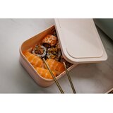 Kutija za hlađenje u vintage dizajnu iz 1960ih bit će nezamjenjiv pomoćnik na svakom putovanju, pikniku ili ljetnoj zabavi. Zamjenjivi remen od prave kože omogućuje udobno nošenje. Zahvaljujući tri mogućnosti podešavanja remena, kutiju možete nositi u ruci, preko ramena ili je omotati oko poklopca kako biste spriječili slučajno otvaranje. U kutiji se nalaze i 2 kutije za hranu dimenzija 19,7 x 12 x 6 cm (zapremina 1 l). Oba dijela kutije mogu se prati u perilici posuđa. Donji dio je pogodan i za mikrovalnu pećnicu. Kutija sigurno drži obje kutije, plus dvije limenke. Bez kutija u njega stane do 8 limenki treće šalice vašeg omiljenog pića koje će čuvati na temperaturi od 5 15 C 24 sata.