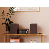 Cisti klasicni stereo mini kafi smedi/orah, mikro stereo sustavDoživi vjecni stereo zvuk s Classic Stereo MiniOvaj funkcionalni mikro stereo sustav pruža cjelovito zvucno iskustvo, ukljucujuci CD player. Intuitivne tipke, daljinski upravljac i živopisni TFT zaslon osiguravaju jednostavnu upotrebu, dok elegantan drveni dizajn dodaje eleganciju tvom audio doživljaju.Pravi stereo sa 2x 20 W zvucnicima i 4incnim niskotoncima DAB+ & FM radioDAB+ i FM radioCD playerIzlaz za slušalicePovezivanje putem