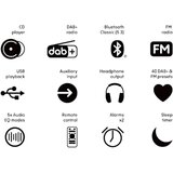 Pure Classic Stereo Mini BaumwollWhite/Oak, MicroStereo SystemThe charming compact stereo systemReal stereo sound, rich soundEnjoy a rich, roomfilling sound with two 20W speakers and 4inch woofers that deliver a powerful stereo experience from a compact system. Whether it's jazz, rock, or podcasts everything sounds fuller and more vibrant.Timeless design, modern touchAvailable in cotton white/oak or coffee brown/walnut, this stereo system naturally fits into any room. Compact yet elegant, it adds a touch of sophistication to the space on a bookshelf or dresser.DAB+ and FM radioTune in to your favorite stations with crystalclear DAB+ or classic FM. With 20 presets each, your morning shows, news, and playlists are always just a click away.Classic CD playbackStill love your CD collection? So do we. Pop in your favorite CDs and let the integrated CD player revive the warm, familiar sound of analog music all without streaming.Bluetooth 5.3 connectivityWith ultrastable Bluetooth 5.3, you can stream directly from your smartphone, tablet, or laptop. Enjoy lagfree music and easy pairing without wires anytime.Versatile inputs and headphone jackFrom AUX and USB to a headphone output the Classic Stereo Mini is designed to seamlessly integrate with your setup. Whether you want to connect your turntable or enjoy a solo listening session, it's always ready.Bright 2.4inch TFT color displayThe brilliant display shows everything clearly track names, sources, radio stations, and settings are easily readable even from a distance.SpecificationsConnectionsSupported reception types: DAB+ FMAutomatic station searchBluetooth version: 5.3Radio frequency (FM): 87.5108MHzRadio frequency (DAB/DAB+): 174240MHzInputs: USBA, RCAOutputs: 3.5mm jack Power supplyPower: Power cordInput voltage: 100240VBattery type: AAAAC input frequency: 5060HzSupplied power plug: Type C & G SpeakersChannels: StereoSpeakers: 1x 1" soft dome tweeter, 1x 4" wooferPower output in watts: 40 FeaturesStation presets: 40 DAB+ 40 FMSnooze functionControl: On the device Remote controlClock displayCD formats: CDR, MP3CDDisplay size: 2.4"Alarms: 2Alarm types: Ringtone, RadioSleep timerColor displayCD playerDimmable displayEqualizer Dimensions and weightProduct height: 10.8cmProduct width: 57cmProduct length: 23.7cmProduct weight: 6.4kg