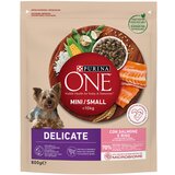 Ako vaš pas male pasmine ima osjetljivu probavu, to ne znači da mora odustati od užitka! Purina ONE Mini Delicate losos i riža ukusna je suha hrana koja se sastoji od hrskavih i mekih kroketa. Všeg malenog ljubimca opskrbljuje svim važnim hranjivim tvarima. Ova je hrana bogata omega3 masnim kiselinama i cinkom, što može utjecati povoljno na prirodnu barijeru kože i sjajnu dlaku. Za optimalnu probavu dodani su prebiotici i visoko probavljivi sastojci koje tijelo može dobro iskoristiti. Purina ONE Mini Delicate losos i riža sadržava 70 % proteina životinjskog podrijetla i stoga može pridonijeti održavanju mišića vašeg ljubimca. Purina ONE Mini Delicate losos i riža u pregledu: uravnotežena suha hrana za odrasle pse malih pasmina do 10 kg koji su osjetljivi na prehranu koža i dlaka: bogato omega3 masnim kiselinama i cinkom, može povoljno utjecati sjajnu dlaku i prirodnu kožnu barijeru normalan imunološki sustav: antioksidansi mogu potaknuti vlastitu obranu tijela proteini visoke kvalitete: 70 % proteina životinjskog podrijetla od ukupnog udjela proteina, za vitke mišiće probava: prirodni prebiotici za podršku idealnoj probavi i prirodnoj crijevnoj flori lako probavljivo: odabrani sastojci koje tijelo lako apsorbira vrlo ukusno: 2 teksture, hrskavi i meki kroketi, prilagođeni veličini čeljusti psa 100 % cjelovito: sa svim važnim hranjivim tvarima visoka prihvaćenost: s ukusnim lososom ambalaža koja se može reciklirati: sa zatvaračem za očuvanje svježine preporučuju veterinari