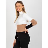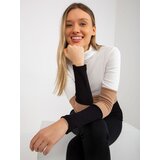 Ecrublack fitted basic blouse with a striped turtleneck. Material Type: Ribbed Product code: RVBZ84651.14PDominant pattern: no patternStyle: Casualoccasion: casual, for work, for the city The model is wearing one size. Model's measurements: height 178 cm, bust 89 cm, waist 65 cm, hips 95 cm. Measurements of the blouse in one size measured flat: armpit width 37 cm, sleeve length 56 cm, total length 63 cm.