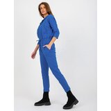 Dark blue sweatsuit with pants and hood. Product code: RVKO7824.04Dominant pattern: plainStyle: Casualoccasion: everyday, for the city, for a walk The model is wearing a size S/M. Model's measurements: height 176 cm, bust 85 cm, waist 64 cm, hips 92 cm Dimensions of the suit in size S/M measured flat: armpit width 55 cm, sleeve length 41 cm, total length 137 cm.