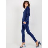 Cobalt women's velour set with appliqu . Product code: RVKMPL8442.23PDominant pattern: plainStyle: Casualoccasion: everyday, for the city, for a walk The model is wearing a size S/M. Model's measurements: height 177 cm, bust 84 cm, waist 62 cm, hips 89 cm. Dimensions of the set in size S/M measured flat: width under the armpits 52 cm, length of the sweatshirt 64 cm, sleeve length 58 cm, width at the waist 34 cm, length of the pants 100 cm.