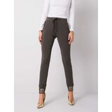 Dark khaki sweatpants with appliqu . Material: 90% cotton, 10% elastanewashing method: machine wash at 30CThe model is wearing a size S. Model's measurements: height 176 cm, bust 85 cm, waist 64 cm, hips 92 cm. Measurements of pants in size S measured flat: waist 35 cm, total length 101 cm, waist height 28 cm