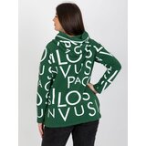 Dark green plus size hoodie with a print. Product code: RVBL50561.95Dominant pattern: printStyle: Casualoccasion: casual, for a walk, for the city The model is wearing one size. Model's measurements: height 174 cm, bust 100 cm, waist 74 cm, hips 107 cm. Measurements of the one size sweatshirt measured flat: armpit width 60 cm, sleeve length 55 cm, total length 68 cm.