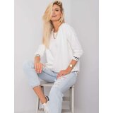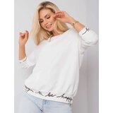Ecru sweatshirt with inscriptions on the welts. Material: 90% cotton, 10% elastanewashing method: machine wash at 30CThe model is wearing one size. Model's measurements: height 175 cm, bust 85 cm, waist 63 cm, hips 95 cm. Measurements of the one size sweatshirt measured flat: armpit width 59 cm, total length 63 cm, sleeve length 49 cm