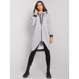 Grey women's zipup sweatshirt. Material: 90% cotton, 10% elastanewashing method: machine wash at 30CThe model is wearing a size S/M. Model's measurements: height 176 cm, bust 86 cm, waist 60 cm, hips 88 cm. Dimensions of the sweatshirt in size S/M measured flat: armpit width 66 cm, total length 100 cm, sleeve length 60 cm