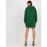 Dark green long zipup sweatshirt with a hood. Product code: RVBL8149.91PDominant pattern: plainStyle: Casualoccasion: everyday, for the city, for a walk The model is wearing a size S/M. Model's measurements: height 172 cm, bust 88 cm, waist 61 cm, hips 92 cm. Dimensions of the sweatshirt in size S/M measured flat: armpit width 64 cm, sleeve length 59 cm, total length 83 cm.