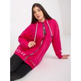 Fuchsia plus size zipup hoodie . Product code: RVBL8302.78Dominant pattern: plainStyle: Casualoccasion: casual, for a walk, for the city The model is wearing one size. Model's measurements: height 174 cm, bust 100 cm, waist 74 cm, hips 107 cm. Measurements of the one size sweatshirt measured flat: armpit width 65 cm, sleeve length 58 cm, total length 76 cm.