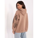 The model is wearing a size one size. Model's measurements: height 173 cm, bust 85 cm, waist 62 cm, hips 95 cm. Dimensions of the onesize sweatshirt measured flat: armpit width 67 cm, sleeve length 68 cm (from the seam), hip width 55 cm, total length 71 cm.