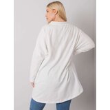 Ecru plus size tunic with pockets. Material: 90% cotton, 10% elastanewashing method: machine wash at 30CThe model is wearing one size. Model's measurements: height 172 cm, bust 102 cm, waist 77 cm, hips 118 cm. Measurements of the one size tunic measured flat: armpit width 69 cm, sleeve length 61 cm, total length 87 cm