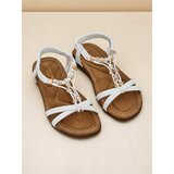 Womens flat sandals the perfect idea for hot summer days. Straps made of pleasant ecofriendly leather. The front is decorated with elegant braided straps and bead embellishments. Slipon footwear.