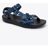 Sports women's sandals on a rubber sole. The straps are made of fabric material with a print and decorated with a bow. The presented women's shoes are fastened with Velcro straps. They adhere well to the foot!