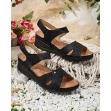 Women's lowheeled sandals. They are made of eco leather, the insole is eco leather. The footwear is fastened with velcro straps. Perfect for creating fashionable summer outfits!