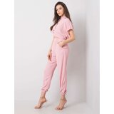 RUE PARIS Pink casual set. The set includes: trousers, blouseMaterial: 95% polyester, 5% elastanewashing method: machine wash at 30CThe model is wearing a size S. Model's measurements: height 173 cm, bust 78 cm, waist 60 cm, hips 90 cm. Dimensions of the set in size S measured flat: width under the armpits 45 cm, length of the blouse 40 cm, width at the waist 32 cm, length of the pants 95 cm