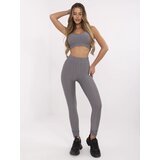 RUE PARIS Grey women's set. The set includes: top, leggingsMaterial: 75% cotton, 18% polyester, 7% elastanewashing method: machine wash at 30CThe model is wearing a size S. Model's measurements: height 172 cm, bust 84 cm, waist 60 cm, hips 88 cm. Dimensions of the set in size S measured flat: width under the armpits 35 cm, top length 32 cm, waist width 30 cm, length of leggings 88 cm