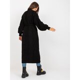 Black long cardigan with a tied strap RUE PARIS . Product code: LCSW8020.16PDominant pattern: plainStyle: Casualoccasion: casual, city, walk, work The model is wearing one size. Model's measurements: height 172 cm, bust 88 cm, waist 63 cm, hips 92 cm. Dimensions of the one size cardigan measured flat: armpit width 67 cm, total length 109 cm, sleeve length 60 cm.