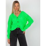 Fluo green openwork summer sweater with buttons RUE PARIS . Product code: LCSW8022.04PDominant pattern: openworkStyle: Casualoccasion: casual, city, walk, work The model is wearing one size. Model's measurements: height 178 cm, bust 89 cm, waist 65 cm, hips 95 cm. Measurements of the one size sweater measured flat: armpit width 60 cm, total length 60 cm, sleeve length 57 cm.