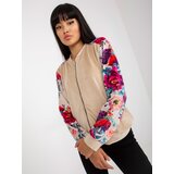 Beige velour bomber jacket with RUE PARIS prints. Extras: pocketsMaterial: 90% viscose, 10% elastanewashing method: machine wash at 30C Product code: RVBL8235.38dominant pattern: flowersStyle: Casualoccasion: casual, for a walk, for the city The model is wearing a size S/M. Model's measurements: height 167 cm, bust 73 cm, waist 64 cm, hips 91 cm. Dimensions of the sweatshirt in size S/M measured flat: armpit width 55 cm, total length 60 cm, sleeve length 55 cm.