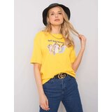 RUE PARIS Yellow printed tshirt . Material: 95% cotton, 5% elastanewashing method: machine wash at 30CThe model is wearing a size S. Model's measurements: height 175 cm, bust 84 cm, waist 65 cm, hips 92 cm. Dimensions of a tshirt in size S measured flat: armpit width 50 cm, total length 70 cm