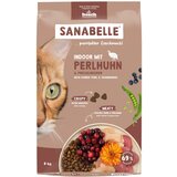 Uravnotežena, kvalitetna hrana za kućne mačke: receptura Sanabelle Indoor je posebno prilagođena potrebama odraslih mačaka od 12. mjeseca života koje žive u kući, na zatvorenom. Mačke koje više spavaju, jedu i njeguju krzno trebaju manje energije nego mačke koje se šmucaju po kvartu. Zbog toga ova fina suha hrana sadrži smanjene energetske vrijednosti. Pritom je zahvaljujući svježoj peradi i mesu biserke bogata kvalitetnim životinjskim proteinima i nudi posebno aromatičan, neodoljiv okus! Osim svježeg mesa, ova ukusna suha hrana sadrži razne sastojke bogate hranjivim tvarima koji mogu podržati imunološki sustav vaše mačke. Borovnice, brusnice i ekstrakt nevena bogati su prirodnim antioksidansima. Riblje ulje bogato je vrijednim nezasićenim omega masnim kiselinama, koje mogu podržati normalnu kožu i sjajnu dlaku. Potpuno uravnotežena suha hrana koja zadovoljava najviše zahtjeve domaćih mačaka, a istovremeno doprinosi lakšem kontroliranju težine. Sanabelle Indoor u pregledu: visokokvalitetna suha hrana za mačke koje borave u zatvorenom prostoru od 12 mjeseci starosti receptura za kućne ljubimce, prilagođen nižoj razini aktivnosti domaćih životinja sa svježim mesom: piletina i meso biserke, za izvrstan okus smanjen energetski sastav: prilagođen kalorijski sadržaj, podržava kontrolu težine za mirne kućne mačke visok sadržaj proteina: bogata životinjskim proteinima, doprinosi održavanju mišićne mase unatoč nižem unosu energije s prirodnim antioksidansima: iz brusnica, borovnica i nevena, s drugim vitalnim tvarima, može podržati imunološki sustav koža i dlaka: nezasićene omega masne kiseline iz ribljeg ulja mogu podržati normalnu kožu i sjajnu dlaku sadrži taurin: esencijalni nutrijent za mačke, podržava prirodni vid i funkciju srca uravnotežen sadržaj hranjivih tvari: uravnotežena mješavina vitamina, minerala i elemenata u tragovima sigurno podrijetlo: obiteljsko poduzeće iz BadenWrttemberga s održivom korporativnom filozofijom koja zadovoljava najviše standarde kvaliteteUravnotežena potpuna hrana za odrasle mačke koje žive u zatvorenom prostoru sa smanjenim udjelom energije, bogata proteinima iz svježe piletine i biserke, izvor prirodnih antioksidansa, s taurinom