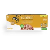 Schesir Complete Nutrition filet u želeu pruža vašoj mački cjelovit obrok koji je posebno prilagođen njezinim potrebama. Hrana je napravljena od prirodnog fileta visokekvalitete koji se nježno kuha na pari kako bi se sačuvale vrijedne arome i vitalne tvari. Nježan žele čini ga posebno ukusnim i kod mačke potiče dovoljan unos tekućine. Ova minimalistička receptura bogata je proteinima i sadrži lako probavljivu rižu kao izvor ugljikohidrata koji ne sadrži glutena. Esencijalni taurin podržava prirodnu funkciju vida, dok cjelovit profil hranjivih tvari vašoj mački pruža sve esencijalne vitamine i minerale koji su joj potrebni za aktivan život. Schesir Complete Nutrition filet u želeu 6 x 85 g u pregledu: uravnotežena mokra hrana za odrasle mačke 100 % prirodan file: minimalna obrada, visoka kvaliteta esencijalni taurin: vitalna aminokiselina za prirodnu funkciju vida cjelovito: uravnoteženo i sa svim važnim vitaminima i mineralima minimalistička receptura: samo odabrane sirovine visoke kvalitete nježan žele: posebno ukusna tekstura velik udio vlage: potiče dovoljan unos tekućine prilagođen profil hranjivih tvari: sličan izvornom plijenu bogato proteinima: važan za mišiće probavljiva riža: kao izvor ugljikohidrata koji ne sadrži gluten vrlo ukusno: dobro prihvaćeno nježno kuhano na pari: za očuvanje vitalnih tvari i aromaKompletna mokra hrana za odrasle mačke, 100 % prirodni sastojci, minimalno prerađena, ukusni fileti i lako probavljva riža, s esencijalnim vitaminima, mineralima i taurinom, s visokim udjelom proteina