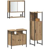 Ovaj set od 3 komada kupaonskog namještaja spaja moderni stil i praktičnost, nudeći elegantan način za organizaciju stvari u kupaonici. Prirodna hrastova završna obrada dodaje dobru notu, čineći ga savršenim za suvremen ili industrijski stil kupaonice, dok se odlično uklapa u uske prostore.