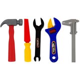 Dječji pribor za male dječake. Uči dijete razlikovati oblike i boje, pomaže u razvoju manuelnih vještina i spretnosti, razvija djetetovu maštu i koncentraciju. DIY može ispasti iznimno zarazna, zanimljiva i vrlo korisna igra za djecu. Međutim, trebate prave alate. Onda će ovaj sjajno opremljen set za male DIY entuzijaste biti vrlo koristan! Ovaj izvrstan set uključuje dobro izrađene i polirane alate u potpunosti izrađene od plastike. Svaki mali DIY entuzijast trebao bi imati alat da postane tatin i djedov pomagač i u slučaju kvara brzo otkloni kvar. Set će mnogim malim pomagačima pružiti puno zabave dok se igraju DIY. Komponente kompleta: kaciga zaštitne naočale nož akumulatorska bušilica čekić dvije pile čeljust škripac žabasti ključ kliješta odvijač konstrukcijski elementi vijci s maticama svrdla nasadni ključ turpija mjerna posuda libela mnogo drugog Veličina paketa: 18 cm x 26 cm x 19 cm Odvijač se napaja sa dvije baterije od 1,5V "AA". Set je namijenjen djeci starijoj od 3 godine . Igračke imaju CE certifikat i u skladu su sa standardom EN 71 . Pakiran je u mrežicu, što ga čini savršenim za poklon.