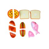 Samostalno rezanje hrane sada je aktivnost koju mogu raditi čak i mališani. Pomoć u kuhinji jedna je od omiljenih malih aktivnosti buduće domaćice. Veliki set pun šarenih elemenata oduševit će svakog malog kuhinjskog pomagača. Igračka je odličan set za dijete koje sanja o samostalnom pripremanju jela. Set se sastoji od velikog broja elemenata koji jamče odličnu zabavu, tijekom koje možete stvoriti, između ostalog, hot dog, kao i poslužiti ribu ili kolačić za desert. Igranje s predstavljenim setom razvit će djetetove motoričke sposobnosti i pozitivno će utjecati na njegovo logičko razmišljanje i kreativnost. Komplet uključuje : kruh hot dog riba tost kolačić daska za rezanje nož kutija Višedijelni set bit će izvrstan predmet za igranje uloga koji pomaže mališanima da steknu međuljudske vještine. Svako dijete može suosjećati s kuharom, prodavačem i kupcem, što će mu zasigurno donijeti veliku zabavu. Štoviše, dopuštanje djetetu da se igra u pripremi obroka učinit će ga samostalnijim i hrabrijim u prihvaćanju novih izazova koji će se pojaviti pred njim. Svi elementi seta povezani su čičkom, zahvaljujući čemu možemo posluživati jela u raznim omjerima. Komplet je namijenjen svoj djeci starijoj od 3 godine. Svi elementi izrađeni su od certificiranog, sigurnog materijala najviše kvalitete. Dizajn pojedinih dijelova prilagođen je dobi djece, zahvaljujući čemu su lagani i praktični. Dimenzije pakiranja: 22 cm x 20 cm x 6 cm