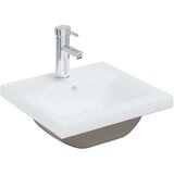 Pomoću ovog seta kupaonskog namještaja, upečatljivog i urednog izgleda, možete stvoriti dodatni prostor za pohranu u kupaonici. Čiste linije i elegantan dizajn savršeno će se uklopiti u vašu kupaonicu. Ovaj set namještaja sastoji se od ormarića za umivaonik, 2 visoka ormarića, ugrađenog umivaonika i ogledala. Elegantni ormarić za umivaonik ima 1 pretinac, a gornji dio idealan je za postavljanje umivaonika. Svaki visoki ormarić sadrži ukupno 5 pretinaca i 2 vrata, što nudi dovoljno prostora za spremanje predmeta u vašoj kupaonici. Izrađen od keramike, umivaonik ne služi samo kao posuda za svakodnevnu upotrebu, nego i kao ukras u vašem životnom prostoru. Zahvaljujući postavljanju trendova i suvremenom dizajnu, ovaj umivaonik zasigurno će odgovarati bilo kojem uređenju. Opremljen je otvorom za istjecanje vode kad se prepuni. Ogledalo također dodaje izvrstan izgled uređenju vašeg doma. Uz to, ovaj kupaonski set lako se čisti vlažnom krpom. Napomena: U isporuku je uključena slavina i potisno cjedilo s funkcijom protiv prelijevanja.