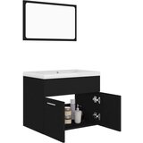 Ovaj elegantni set namještaja za kupaonicu, koji se sastoji od ormarića za umivaonik, ugrađenog umivaonika i ogledala, savršeno odgovara vašoj kupaonici ili toaletu svojim upečatljivim, urednim izgledom. Ormarić za umivaonik izrađen je od iverice, zbog čega je čvrst i stabilan. Ormarić ima 1 pretinac i 2 vrata, što nudi dovoljno prostora za spremanje predmeta. Savršeno se uklapa ispod umivaonika i čini pohranu u kupaonici prilično praktičnom. Izrađen od keramike, umivaonik služi kao posuda za svakodnevnu upotrebu, ali i kao ukras u vašem prostoru za boravak. Zahvaljujući postavljanju trendova i suvremenom dizajnu, ovaj umivaonik zasigurno će odgovarati bilo kojem uređenju. Također je opremljen odvodom za istjecanje vode kad se prepuni. Njegova glazirana površina sama donosi moderan, ali elegantan dizajn. Ogledalo također dodaje izvrstan izgled uređenju vašeg doma. Uz to, ovaj set lako se čisti vlažnom krpom. Napomena: Slavina i odvod nisu uključeni u isporuku.