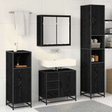 Ovaj set drvenog kupaonskog namještaja ima elegantan moderni dizajn koji se savršeno uklapa u svaku suvremenu kupaonicu. Uključuje ormarić s ogledalom montiranim na zid, ormarić za umivaonik i dva kupaonska ormarića, što olakšava i stilsko pohranjivanje svih tvojih kupaonskih potrepština.