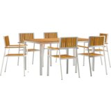 Ovaj set za objedovanje u vrtu uključuje stilizirani pravokutni stol i šest usklađenih stolica od čvrstog drva akacije. Super je za zabave na otvorenom, stvara udoban i privlačan prostor za obitelj i prijatelje da uživaju zajedno na vašem balkonu ili vanjskim prostorima.