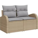set vrtnog namještaja spaja moderni stil i praktičnost. Savršen je za balkone ili terase s laganim bež poli ratanom i udobnim svijetlosivim jastučićima, pružajući stil i udobnost tijekom druženja na otvorenom.