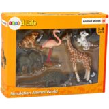 Set of Animals Figurines Giraffe Flamingo Elephant TigerA set of animal figurines is a wonderful journey to the land of adventure and discovery for every little nature enthusiast. The set includes six cute characters: a giraffe, a flamingo, two tigers, an elephant and a pangolin. Each of them is rendered in the smallest detail. Made of sturdy material, these figures are ready for hours of exciting play, whether kids are playing indoors or outdoors.Thanks to the high quality of workmanship and attention to detail, each character in this set seems to come to life, which attracts attention and provides unforgettable moments of joy and fascination. Their durability and solidity mean that they can be used in various conditions, both when playing together at home and outdoors.These realisticlooking figures not only provide entertainment, but also expand the child's knowledge about the diversity of the animal world. Thanks to them, children can play out various scenarios, developing their imagination and perceptive skills.This set of figures is not only a toy, but also an education and development tool that inspires you to discover nature and develop a passion for animals from an early age.Size of the package:24.5cm x 19cm x 6.5cmIt has a CE certificate and complies with the EN71 standard. Intended for children over 3 years of age.