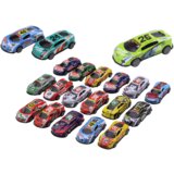 Set of Toy Cars, Spring Springs, Sports Racing Cars 1:64, 20 pcs.A set of springs is a perfect toy for little motoring and racing enthusiasts. On a scale of 1:64, each of the 20 vehicles looks like a real racing car, ready for an exciting ride on the track or anywhere.Each vehicle in the set has a unique graphic and number, which gives them an individual character and allows children to organize their own races and story games involving individual cars.The cars are made in a sports style, which gives them a dynamic look and makes them seem ready to cover any route at maximum speed. Thanks to careful workmanship and attention to detail, children can take on the role of a racing driver and start exciting competitions on their own track or in creative play scenes.The biggest attraction of the cars from this set is their ability to move independently after being pulled up. Just tighten the vehicle, release it and watch it move forward with a bang, providing children with additional fun and action while playing.A set of 20 springs is not only great fun, but also a great opportunity to develop imagination, creativity and manipulation skills for the youngest motoring enthusiasts.Vehicle dimensions:8cm x 3.5cm x 2cmSize of the package:42cm x 31cm x 4cmThe toy is intended for children over 3 years of age. The set is CE certified and complies with the EN71 standard.