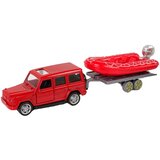 Prijevoz je nužnost za svaki spasilački tim. Sva vozila omogućit će malom vatrogascu da spašava ljude iz nevolje. Mnogo vrsta vozila i mnogo mogućnosti. Mnoštvo varijanti igre s nizom malih vozila zasigurno će potaknuti maštu vašeg djeteta. Jeep ima vrata koja se otvaraju i izrađen je od metala s plastičnim elementima. Jedna od njegovih prednosti je pogon na stražnje kotače, jednostavno povucite automobil unatrag, pustite ga i gledajte kako se vozi naprijed. Set uključuje kartice vozila za učenje i zabavu, koje prikazuju različite vrste vozila. Osim toga, set uključuje veliku vatrogasnu brigadu s izvlačnim ljestvama koje imaju doseg do 32 cm, također pogonjene frikcijskim pogonom. Savršeno reproducirano baš kao i pravi primjerak. Posljednji dio je motorni čamac s prikolicom, koja se po potrebi može pričvrstiti na bilo koje vozilo. Vatrogasna brigada s ovom opremom može spašavati na vodi i na kopnu. Neustrašivi mali vatrogasac može krenuti u bilo koju akciju. Treba li nekome pomoć? Vrijeme je da odaberete vozilo za vožnju u akciju spašavanja. Elementi seta: vatrogasno vozilo 19 cm x 5 cm x 9 cm motocikl s prikolicom 14 cm x 7 cm x 6 cm džip 14 cm x 5 cm x 6 cm Dimenzije paketa: 35 cm x 11 cm x 15 cm Set vozila namijenjen je djeci starijoj od 3 godine. Set ima CE certifikat i u skladu je sa standardom EN 71. Autići su pakirani u kartonsku kutiju s prozirnim prozorčićem, što ih čini idealnim za poklone.