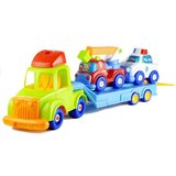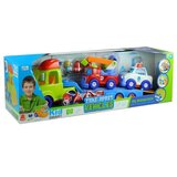 Ovdje predstavljeni set sastoji se od vozila policije i vatrogasaca. Zanimljivo je i to da se ova vozila odlikuju mogućnošću odvrtanja, što će zasigurno biti fenomenalna igračka za one zainteresirane za okolni svijet vašu malu hrpu radosti. Prema ovoj veseloj, višebojnoj kolekciji, svaki će dječak biti ravnodušan. Spoj razvijajuće zabave s mogućnošću sastavljanja i rastavljanja na elementima koje dijete samostalno odabere čini ovu igračku nevjerojatnom razonodom koja će dijete zanimati satima. Ova igračka bit će pun pogodak kako za samostalnog dječaka koji voli konstruirati i ručni rad, tako i za djecu koja se radije igraju s roditeljima ili starijom braćom i sestrama. Set za malog ljubitelja vozila sastoji se od: prikolica za prijevoz automobila, vatrogasno vozilo, policijski automobil figurica policajca i vozača prikolice za prijevoz automobila znakovi i sigurnosni stup, vijci i alati. Višebojna prikolica za prijevoz automobila sastoji se od dva dijela: vozačke kabine s rupama na mjestu prozora, što omogućuje smještaj vozača i suvozača, te raširene prikolice. Smiješni automobil stoji na 4 para rotirajućih kotača, zahvaljujući čemu se dijete može igrati s ovom igračkom na mnogo načina. Automobil ima elemente koji su pričvršćeni velikim, plastičnim vijcima, koje dijete uz pomoć priloženih plastičnih odvijača s zamjenjivim krajevima može odvrnuti, modificirajući vozilo time. Na prikolici za prijevoz automobila nalaze se dva manja automobila policijski automobil i vatrogasno vozilo. Vatrogasno vozilo ima pokretne i rotirajuće elemente, što će savršeno uljepšati zabavu. Vozila su ukrašena naljepnicama policije, putnika i karakterističnim natpisima. Intenzivne, živahne boje u kombinaciji s aerodinamičnim, ugodnim oblicima daju ovoj igrački vrlo veseo karakter. Mogućnost slobodnog odvijanja i zavrtanja elemenata svih automobila omogućit će djetetu da razvija svoju maštu i individualnost, kao i koordinaciju ruku i očiju. Zahvaljujući elementima koji se nalaze u ovom setu, dijete će razumjeti pravila korištenja alata i štoviše bit će sretno, jer će poput tate imati svoj vlastiti, siguran set. Set za strastvenog ljubitelja cestovnih vozila funkcionirat će u različitim uvjetima. Izrađen je od najkvalitetnije plastike, što omogućuje igru kod kuće, u brusilici, vrtu ili na igralištu. Velika prednost ovog seta je mnoštvo elemenata, zahvaljujući kojima dijete može dijeliti s braćom i sestrama. Višebojni set koji se sastoji od vozila i alata prilagođen je svoj djeci starijoj od 3 godine. Ova igračka ima CE certifikat i u skladu je s EN 71 standardom , što jamči sigurnost tijekom igre. Dimenzije odabranih elemenata: raširena prikolica za prijevoz automobila 70 cm x 14 cm x 19 cm, policija: 15,5 cm x 12 cm, vatrogasci: 16,5 cm x 13,5 cm, figurica: 6 cm x 3 cm, odvijač: 12 cm x 3 cm, francuski ključ: 14 cm x 4,5 cm. Dimenzije pakiranja: 73 cm x 22 cm x 22 cm.