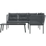 Ovaj set vrtnih sofa savršen je dodatak vašem vrtu, terasi ili trijemu te pruža udoban i privlačan prostor za razgovor s obitelji i prijateljima ili jednostavno opuštanje i uživanje na otvorenom. Robustan i stabilan okvir: Okvir od čelika obloženog prahom osigurava da je vrtni namještaj snažan i stabilan za svakodnevnu vanjsku upotrebu.Izdržljivo i dugotrajno: Tekstilenska tkanina cijenjena je zbog svoje izdržljivosti, otpornosti na vodu i blijeđenje, lakog održavanja i zaštite od UV zraka i plijesni, zbog čega je idealan izbor za vanjski namještaj i konstrukcije za stvaranje sjene.Udobno sjedenje: Ovaj vanjski namještaj, zajedno s debelo podstavljenim jastucima, nudi udobno iskustvo sjedenja.Uklonjiva i periva navlaka: Ovi jastuci za sjedalo imaju uklonjive navlake za jednostavno pranje i održavanje.Čvrsta površina: Čvrsta ploča stolića za terasu idealna je za odlaganje pića ili bilo kojih drugih predmeta koji su vam potrebni pri ruci. Dobro je znati:Kako bi vaš vanjski namještaj ostao lijep, preporučujemo da ga zaštitite vodootpornom navlakom.