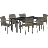 Ovaj set vrtnih stolica je odličan dodatak tvom vanjskom prostoru. Kombinira moderan dizajn s udobnim sjedenjem i jakom izdržljivošću, ovaj set je napravljen od kvalitetnog poliratana i čvrstog okvira od čelika obloženog prahom. Ne samo da osvježava tvoj vrt, terasu ili balkon, nego ti pruža savršeno mjesto za opuštanje s mekanim jastučićima.