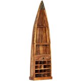 Unesite luksuz neobičnog i starinskog dizajna u svoj interijer pomoću našeg drvenog stalka za vino nadahnutog čamcem! Ovaj stalak za vino u starinskom stilu sa svojim avangardnim dizajnom postat će središte pozornosti u uređenju vašeg interijera. Ormarić za vino napravljen je od masivnog obnovljenog drva koje potječe od greda, podova i potpornih greda iz starih zgrada koje su se rušile i može se sastojati od različitih vrsta drva, kao što su bor, tik, bukva, hrast, cedar, mango, bagrem itd. To znači da obnovljeno drvo zadržava karakteristike tih raznih vrsta drva. Obnovljeno drvo već je odležalo, oštećeno vremenom i osušeno, tako da se ne skuplja ili savija. Izuzetna izrada i estetski privlačni drveni godovi čine svaki komad barskog namještaja jedinstvenim i pomalo drukčijim od sljedećeg. Ormarić za vino u potpunosti je ručno izrađen, a svaki korak procesa izveden je s najvećom pažnjom, bilo da je riječ o poliranju, bojenju ili lakiranju. Sa 16 odjeljaka za boce, 1 ladicom i 3 police, stalak za vino nudi dovoljno prostora za spremanje vaših boca vina i dodatnog pribora. Važna napomena: Boje i drveni godovi razlikuju se od primjerka do primjerka, što čini svaki naš stalak za vino jedinstvenim; isporuka je nasumična. Upozorenje: Kako bi se spriječilo prevrtanje, ovaj proizvod mora se upotrebljavati s priloženim uređajem za pričvršćivanje na zid.