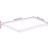 Dajte novi život svom stolu uz ovu drvenu stolnu ploču. Izvrsno je rješenje za osvježenje vašeg stola kod kuće ili u poslovnom okruženju. Masivno drvo manga: Masivno drvo manga snažno je, tropsko tvrdo drvo koje čini čvrst namještaj. Njegovi prekrasni drveni godovi čine svaki komad namještaja malo drugačijim od sljedećeg.Višenamjenska primjena: Ova zamjenska ploča stola može se kombinirati s različitim bazama prema vašim potrebama.Dizajn sa živim rubom: Drvena površina namještaja ima rustikalni živi rub. Zbog toga su čvorovi, pukotine, blago zakrivljeni oblici i nijanse boja dio nje, a svaki komad ima svoj jedinstveni karakter koji treba prikazati.Površina koja se lako čisti: Glatka stolna ploča lako se čisti vlažnom krpom. Dobro je znati:Svaki je artikl jedinstven zbog varijacija u bojama i godovima. Dostava je nasumična, čime se osigurava ekskluzivnost i individualnost vašeg proizvoda.