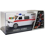 Strung Ambulance Sound Light SirenThe Little Toy Car is the most popular toy that boys of all ages love. A white ambulance is combined with red details, the word AMBULANCE and LEDs that light up while driving to a rescue operation, additionally the siren signal will add realism to the fun. Make your child feel like a real lifesaver.The racing car is pullback, just pull it back and let me watch the speed. The toy will awaken your child's curiosity and passion for the medical profession.It is packed in a box with a transparent lid, making it perfect for a gift, but also for collecting, it looks perfect on a shelf.Car dimensions:15.5 cm x 5.5 cm x 6 cmBox dimensions:21.5 cm x 9.5 cm x 9.5 cmThe toy has a CE certificate and complies with the EN 71 standard. It is powered by two 1.5 V AA batteries.